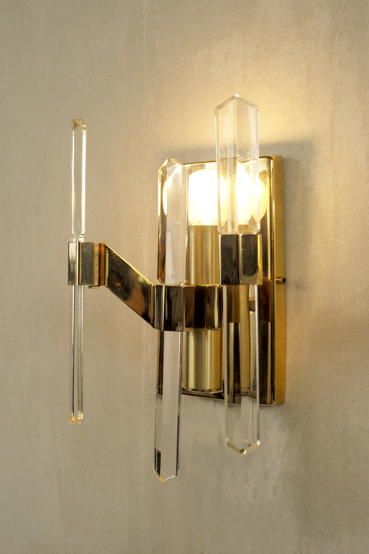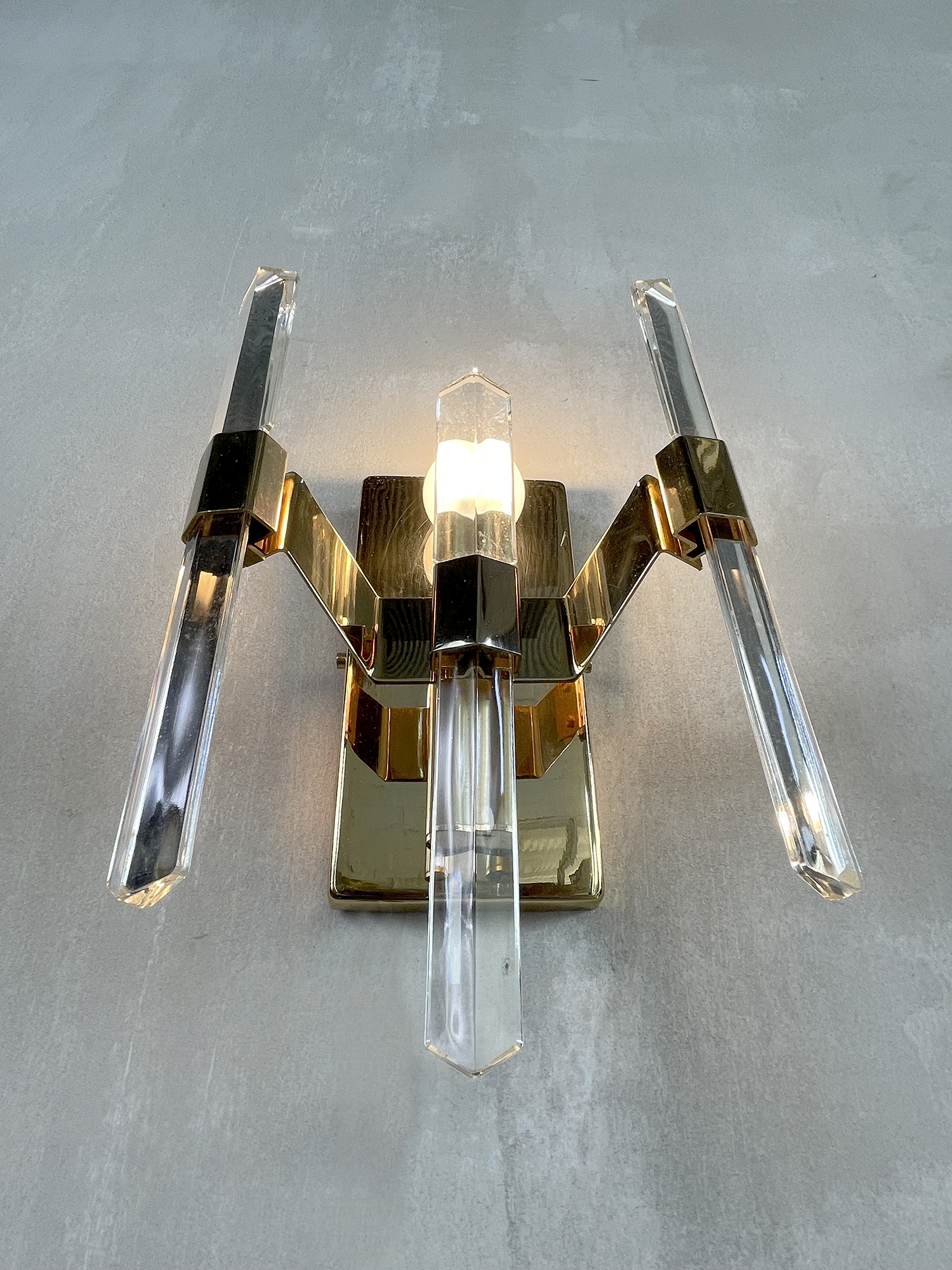 Pair of wall lights in gilded metal and faceted glass, Sciolari 1970. Very good condition.