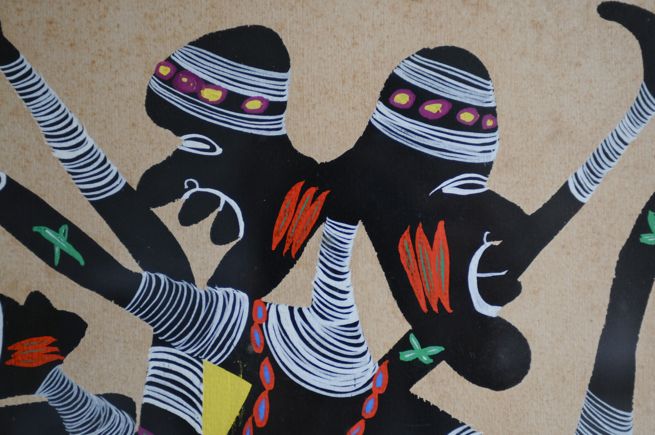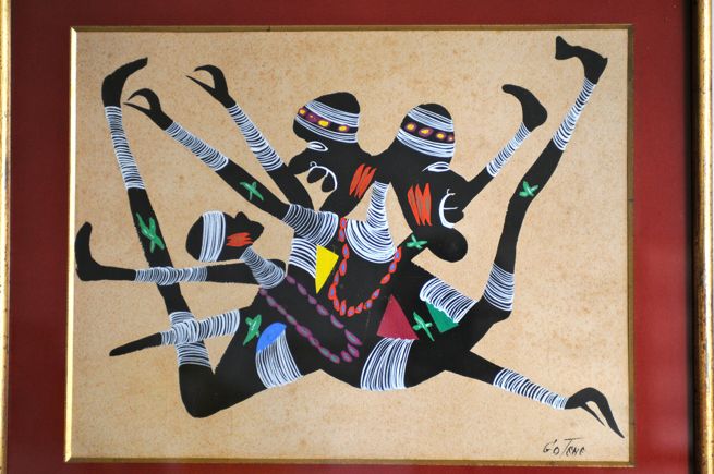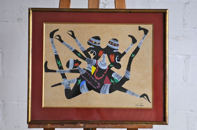 Marcel Gotene est né vers 1935 à Yaba, au Congo. Figure de pionnier au sein de l'école de Poto Poto, il a été primé à de nombreuses reprises. Gouache sur papier, signé bas droit.