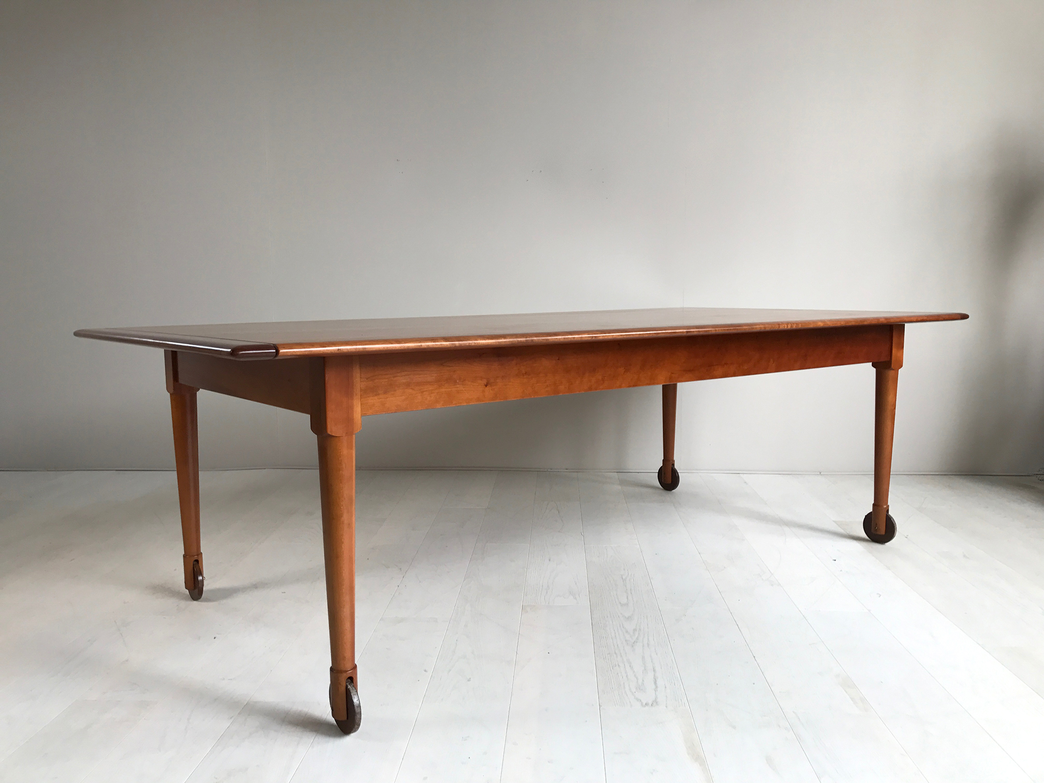 Grande table de communauté Shaker en merisier massif, Italie 1980.