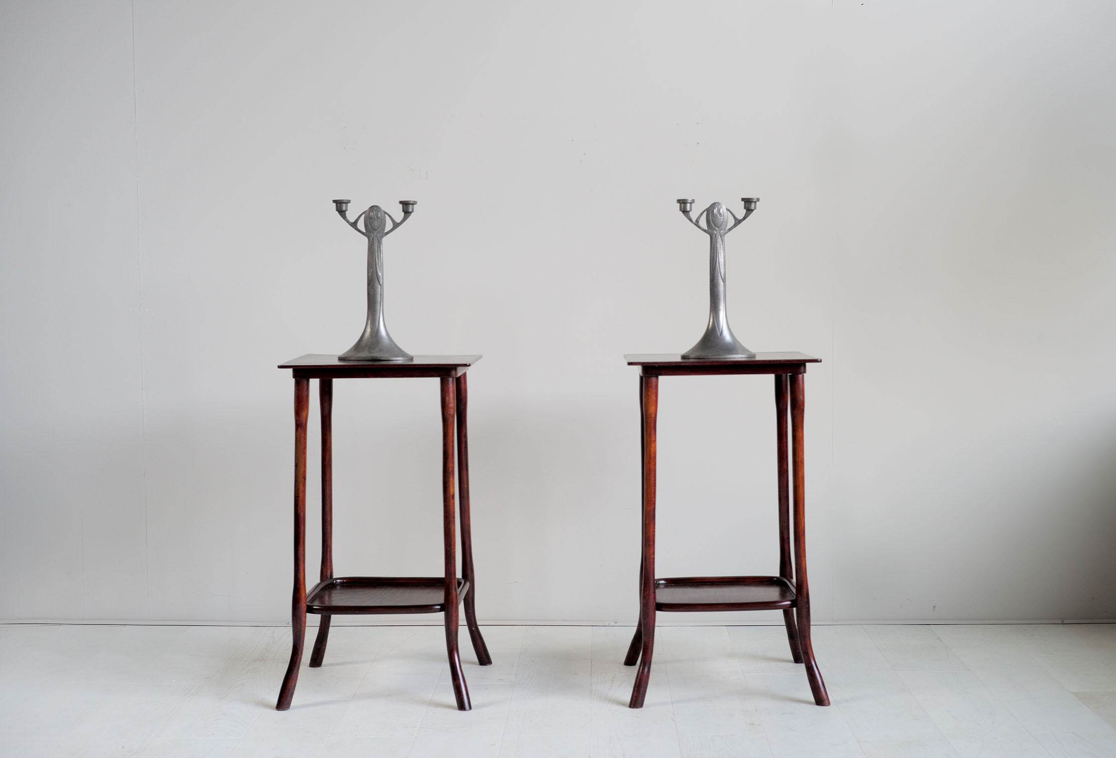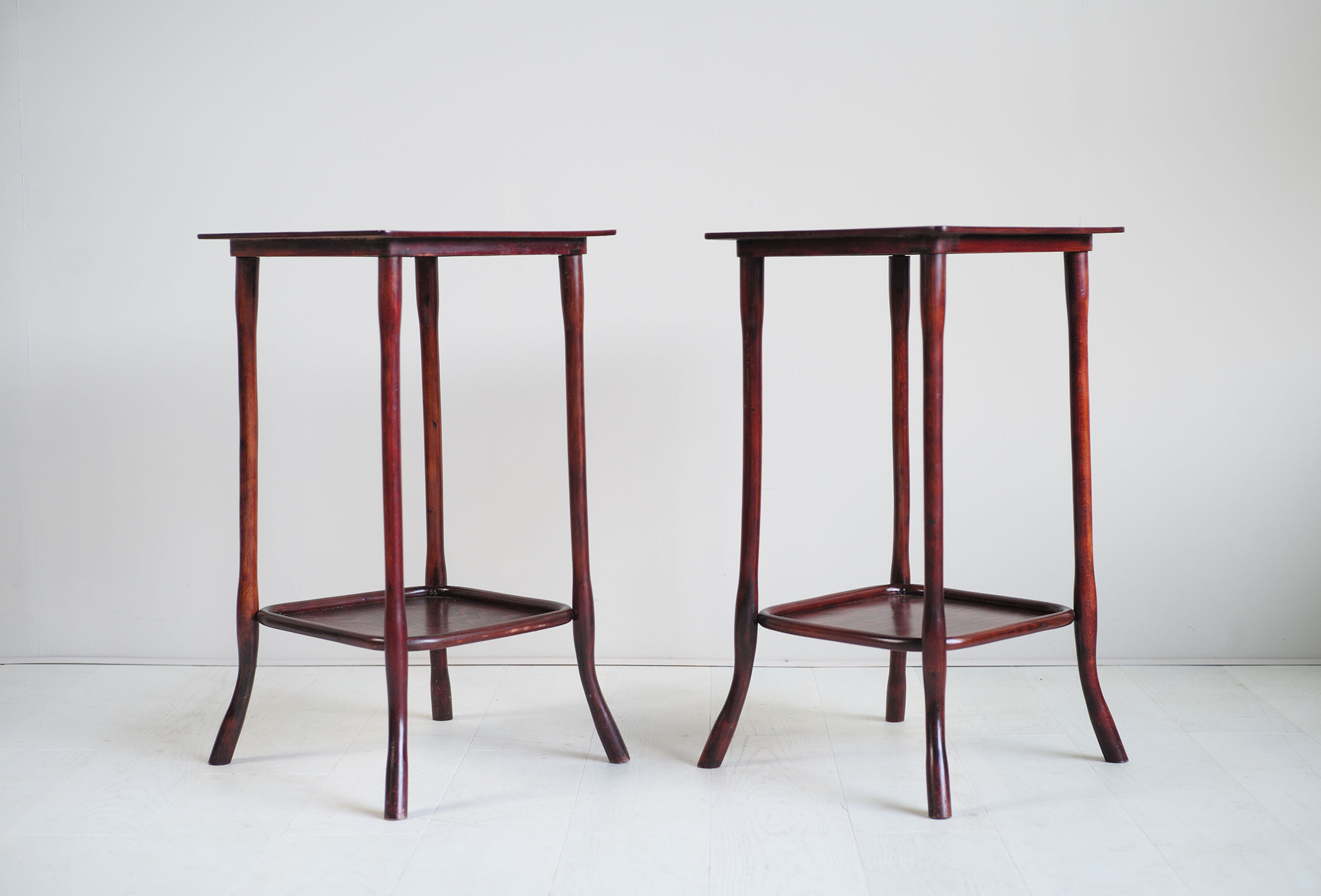 Michael Thonet, Rare paire de tables dites "Servante" en hêtre courbé, numérotées 9136 au catalogue Thonet, Wien 1900.