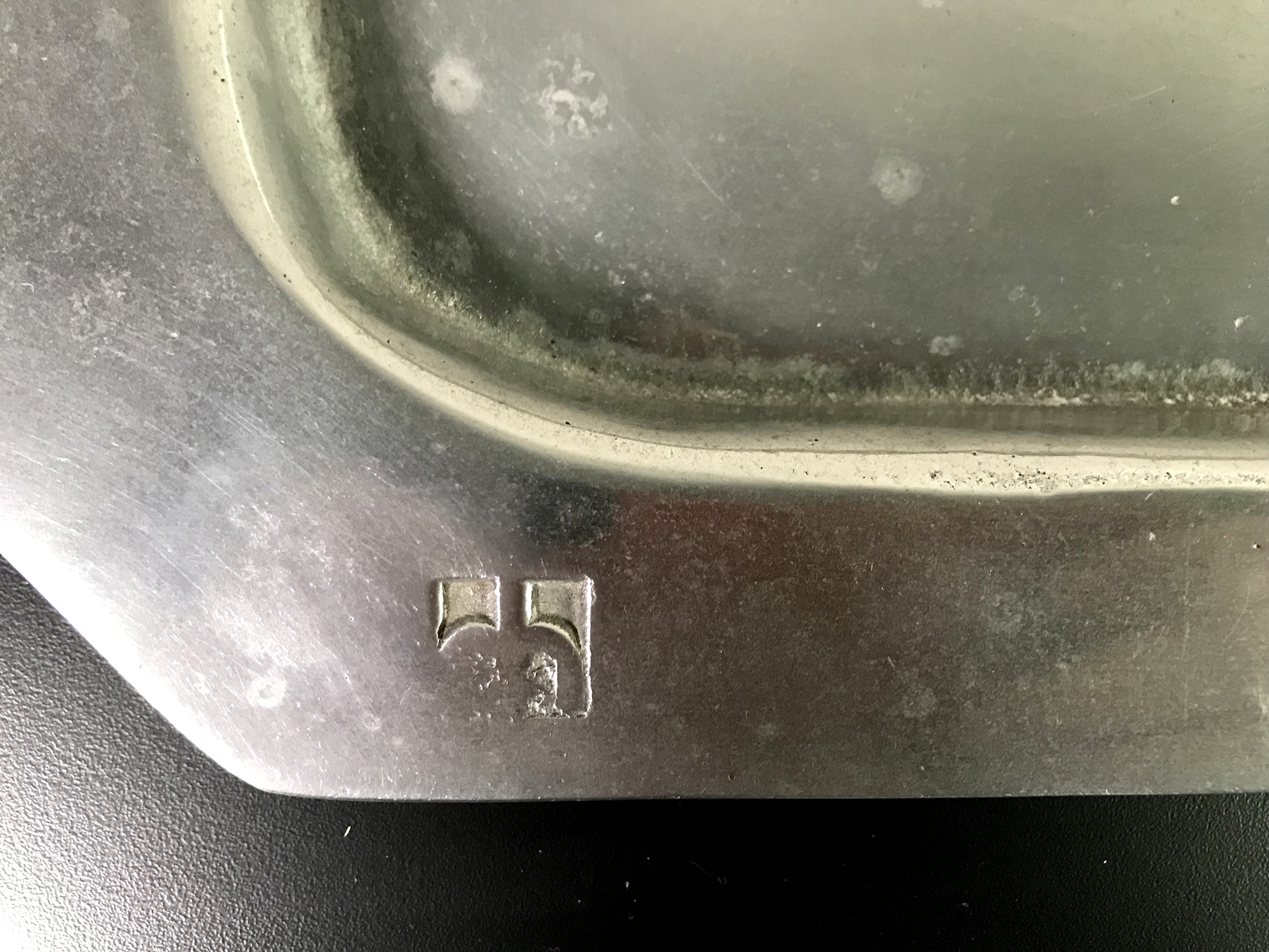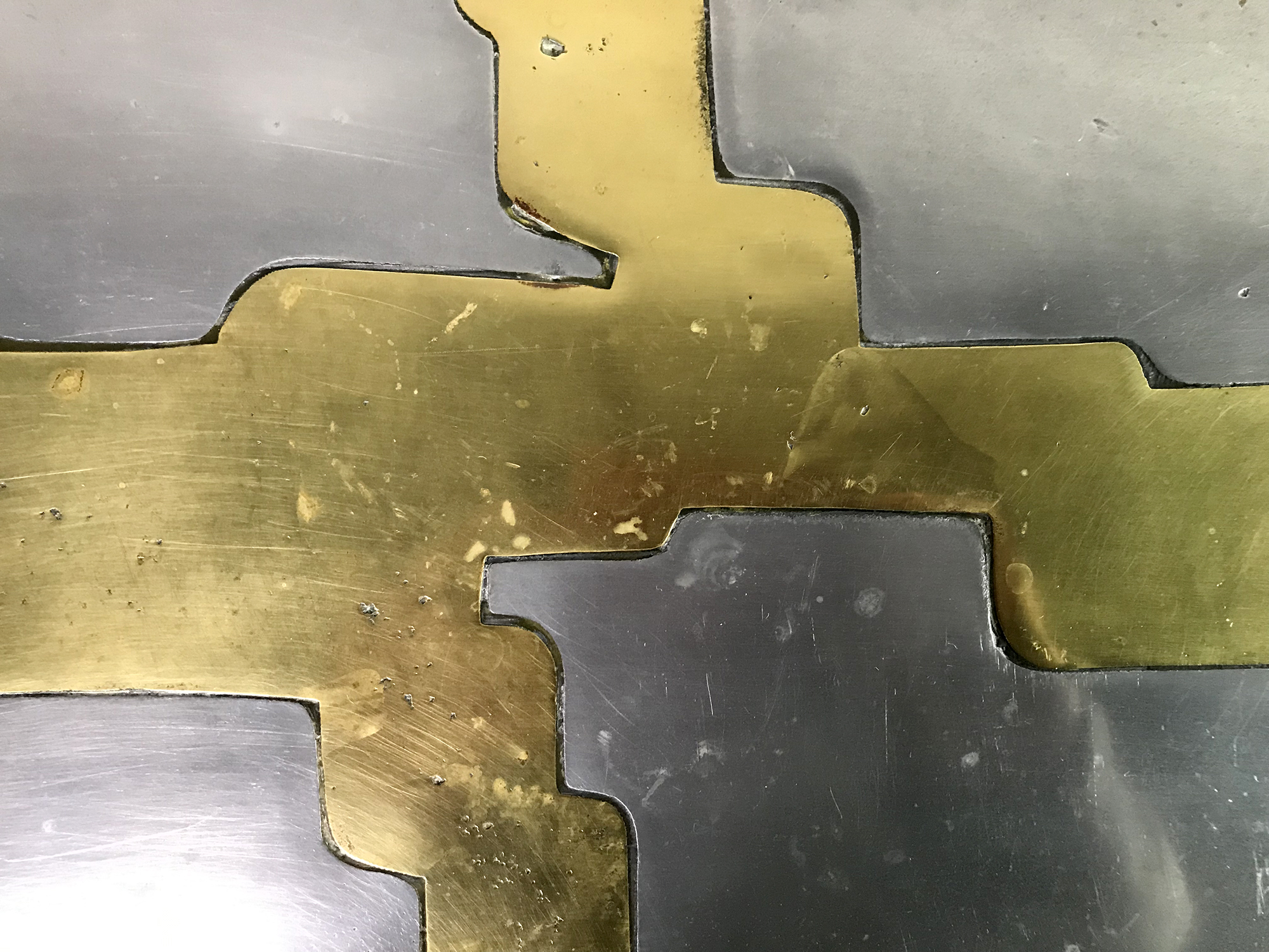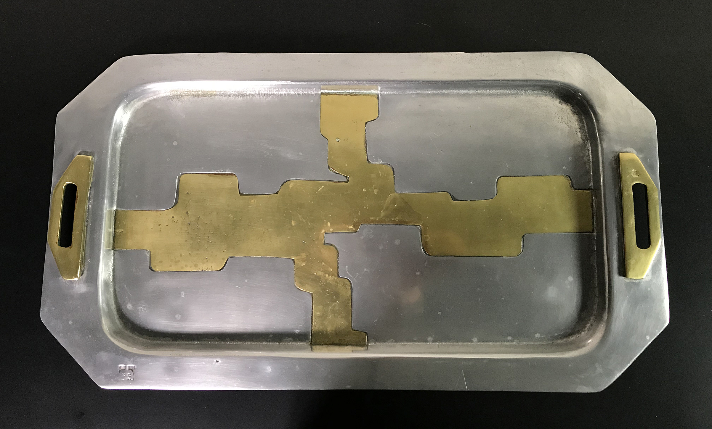 Plateau en aluminium massif à inclusion de laiton signé du sculpteur David Marshall, Espagne 1970.
