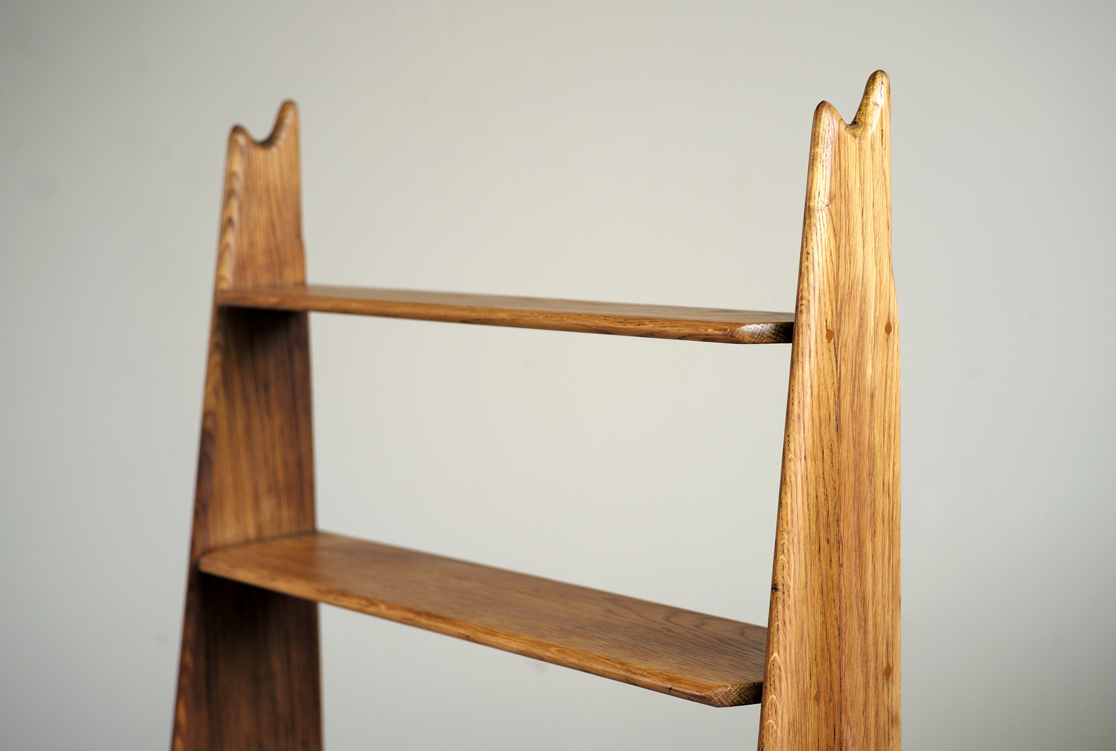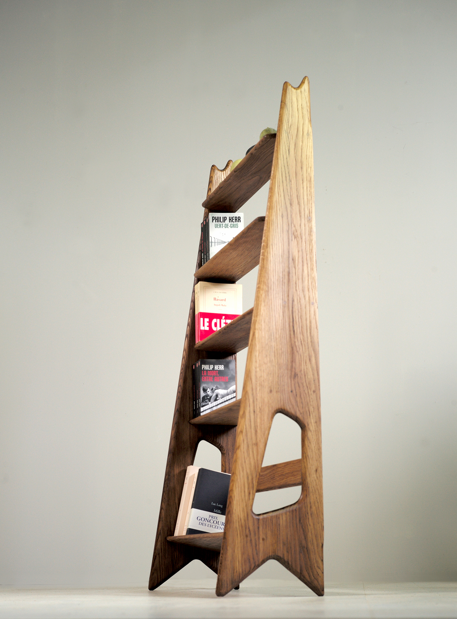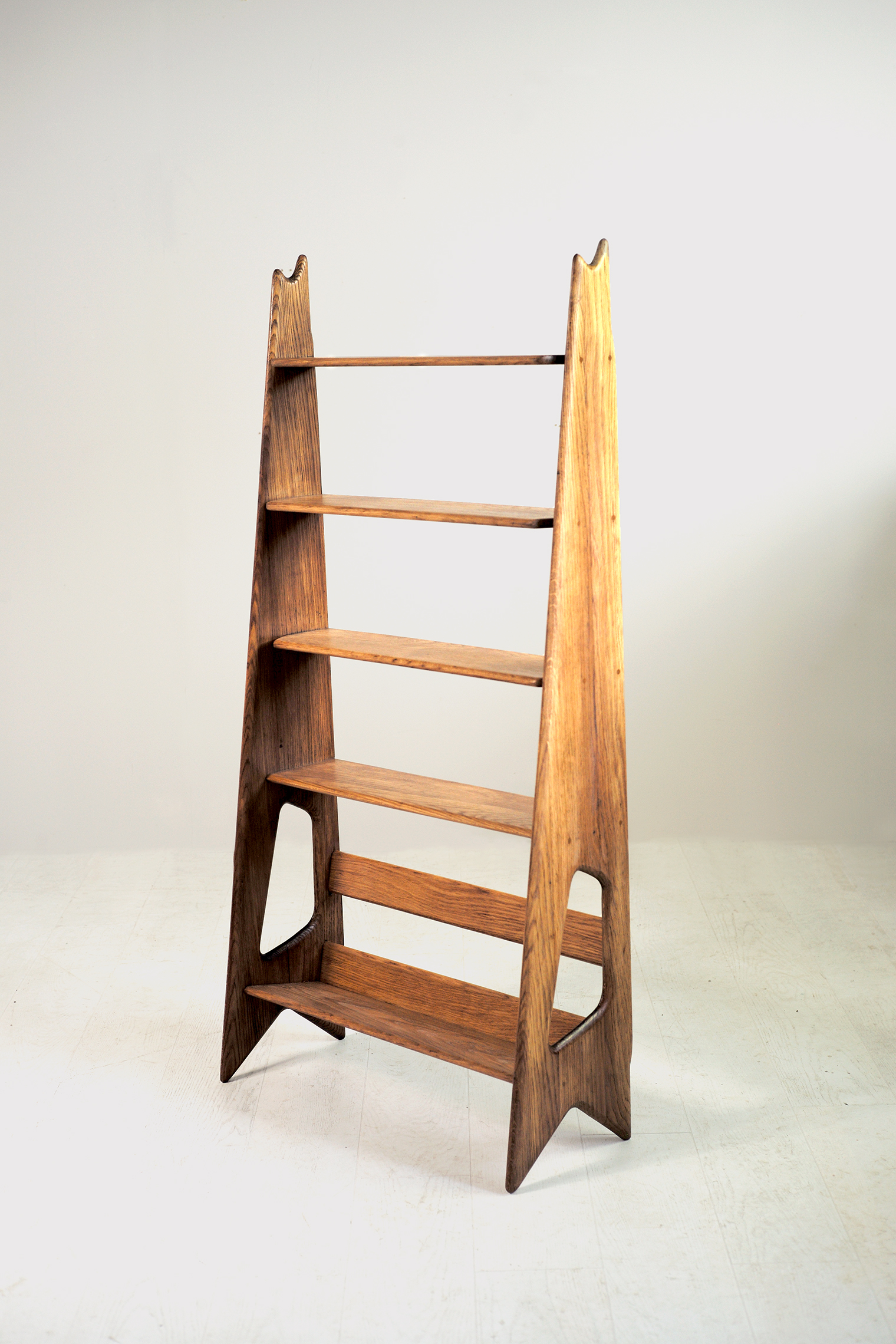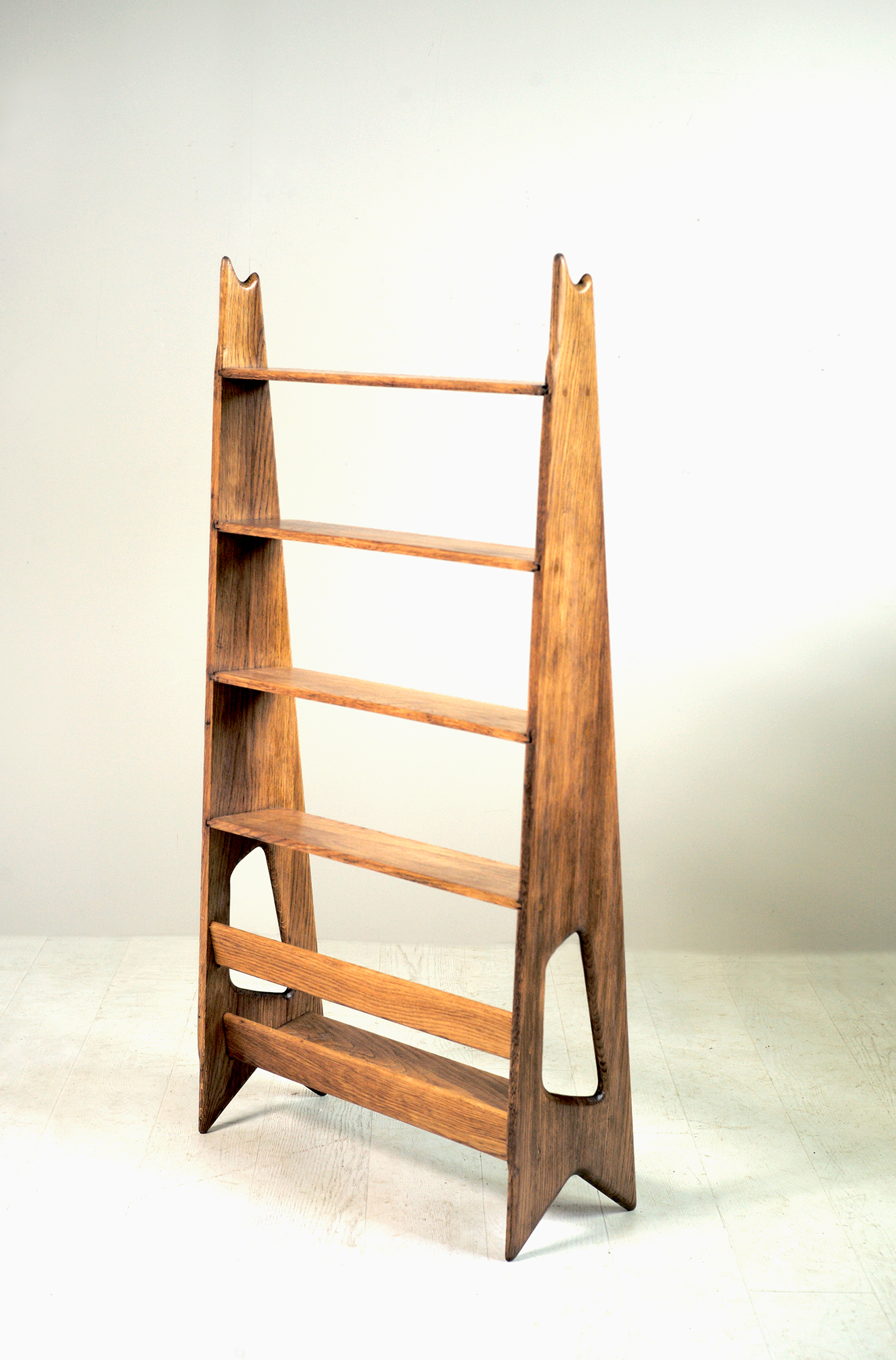 Pierre Cruège, bibliothèque de forme libre en chêne massif, édition Formes, France 1950. Elève de René Buthaud et de René Prou, Pierre Cruège est un acteur important de la Reconstruction Française (1945-1955). Cette pièce est un bel exemple de sa créativité.