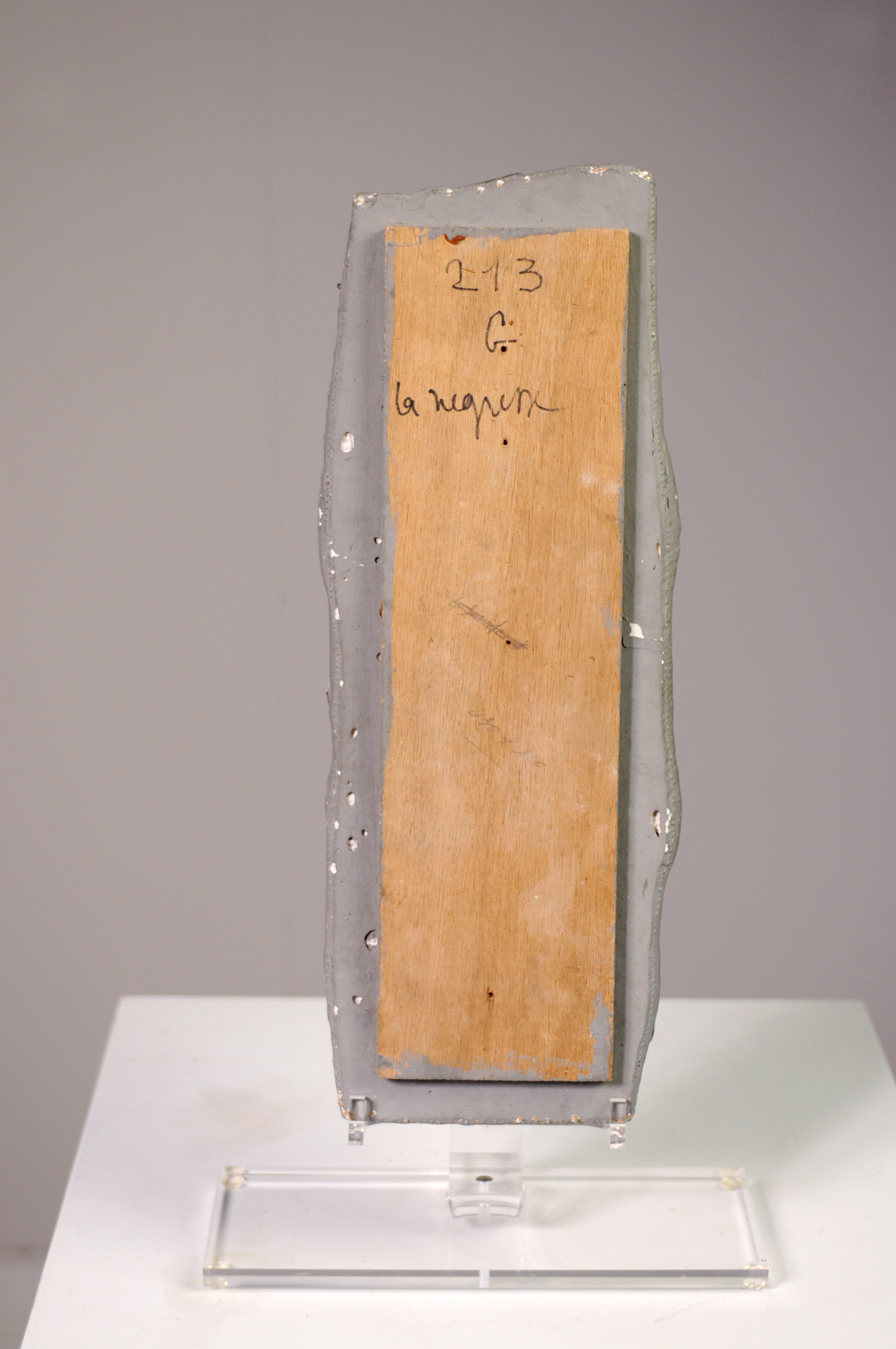 Plaque en céramique émaillée signée Henri Plisson, titrée "La Négresse". "Technique mixte utilisant la rugosité apparente de la terre, la transparence du verre, les multiples composants des émaux mats, lisses, cloqués, granités, jaspés, translucides... dont les effets varient suivant les superpositions et cuissons, jusqu’à une quinzaine…"
