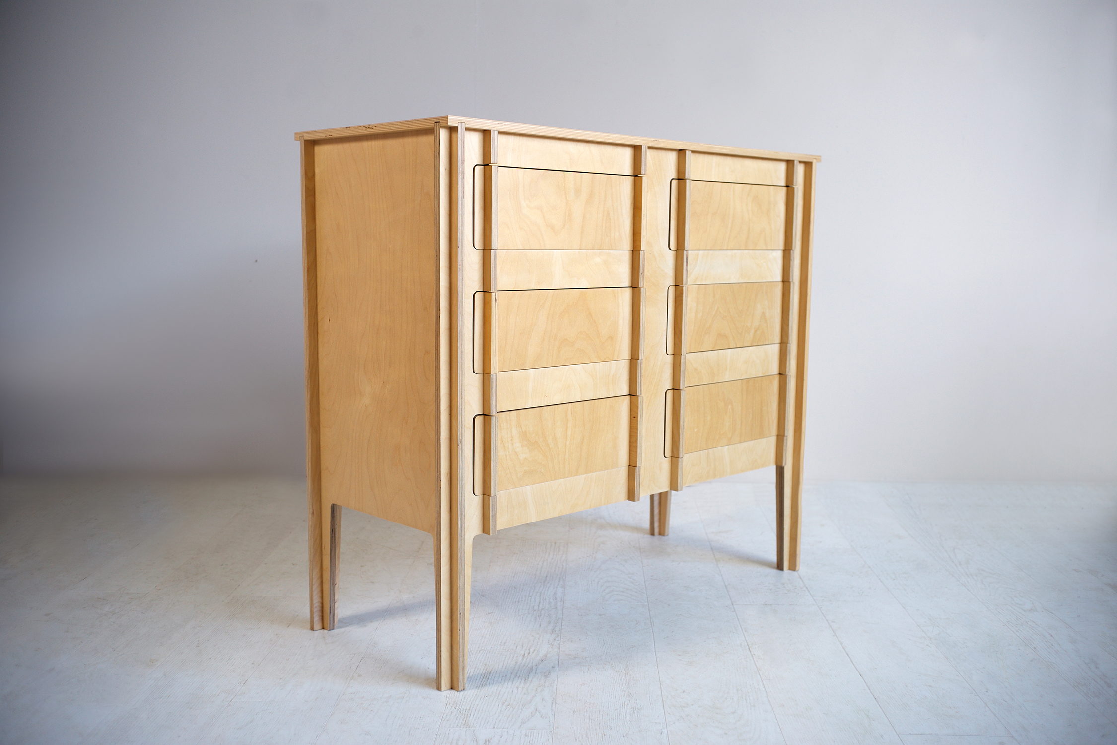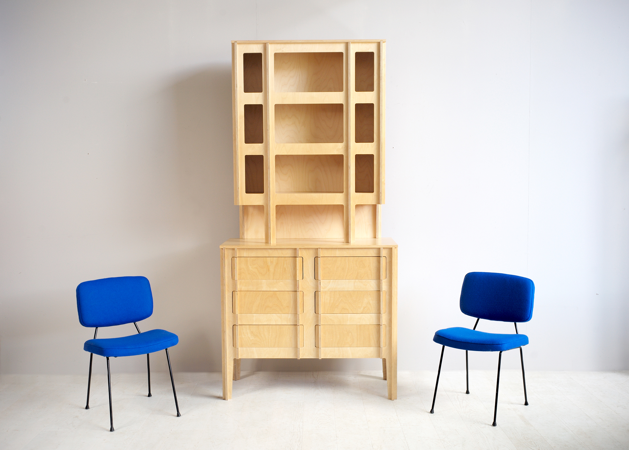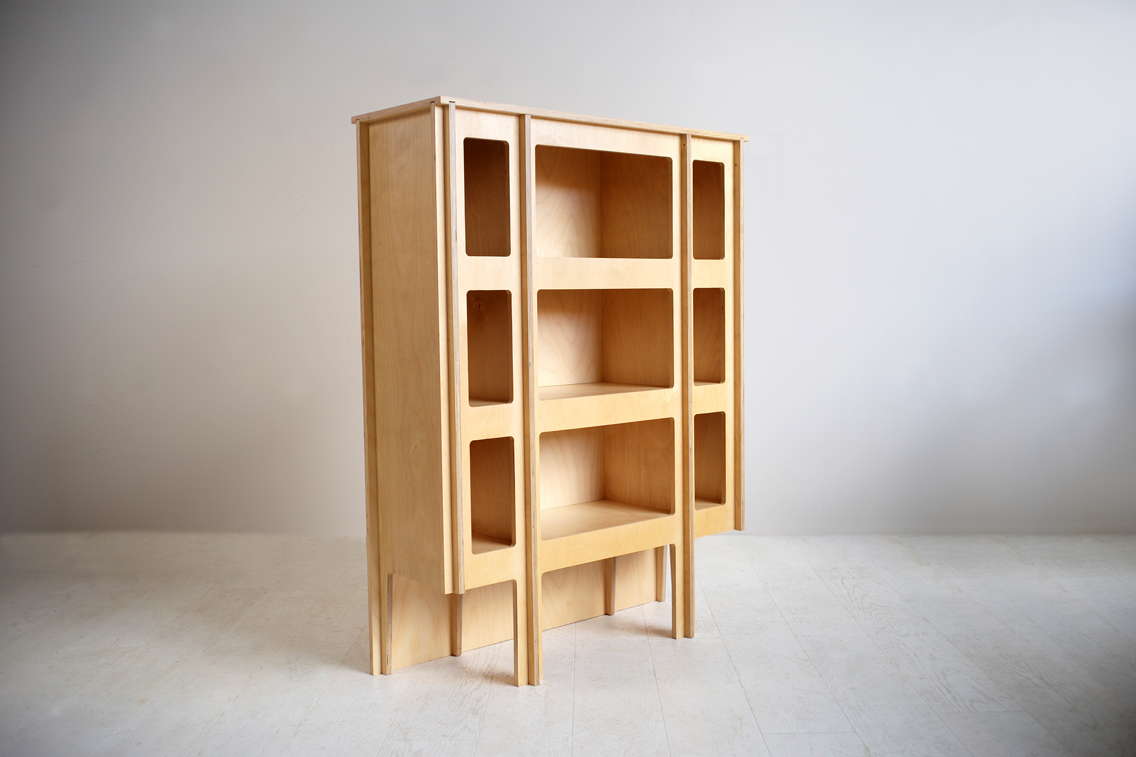 Cabinet en contreplaqué de bouleau de Joost van Bleiswijk , Holland 2004. Composé d'une commode à six tiroirs et d'une bibliothèque, cet ensemble est remarquable par son design et sa conception, ce meuble est assemblé par emboîtement, sans vis, sans colle ni charnières.