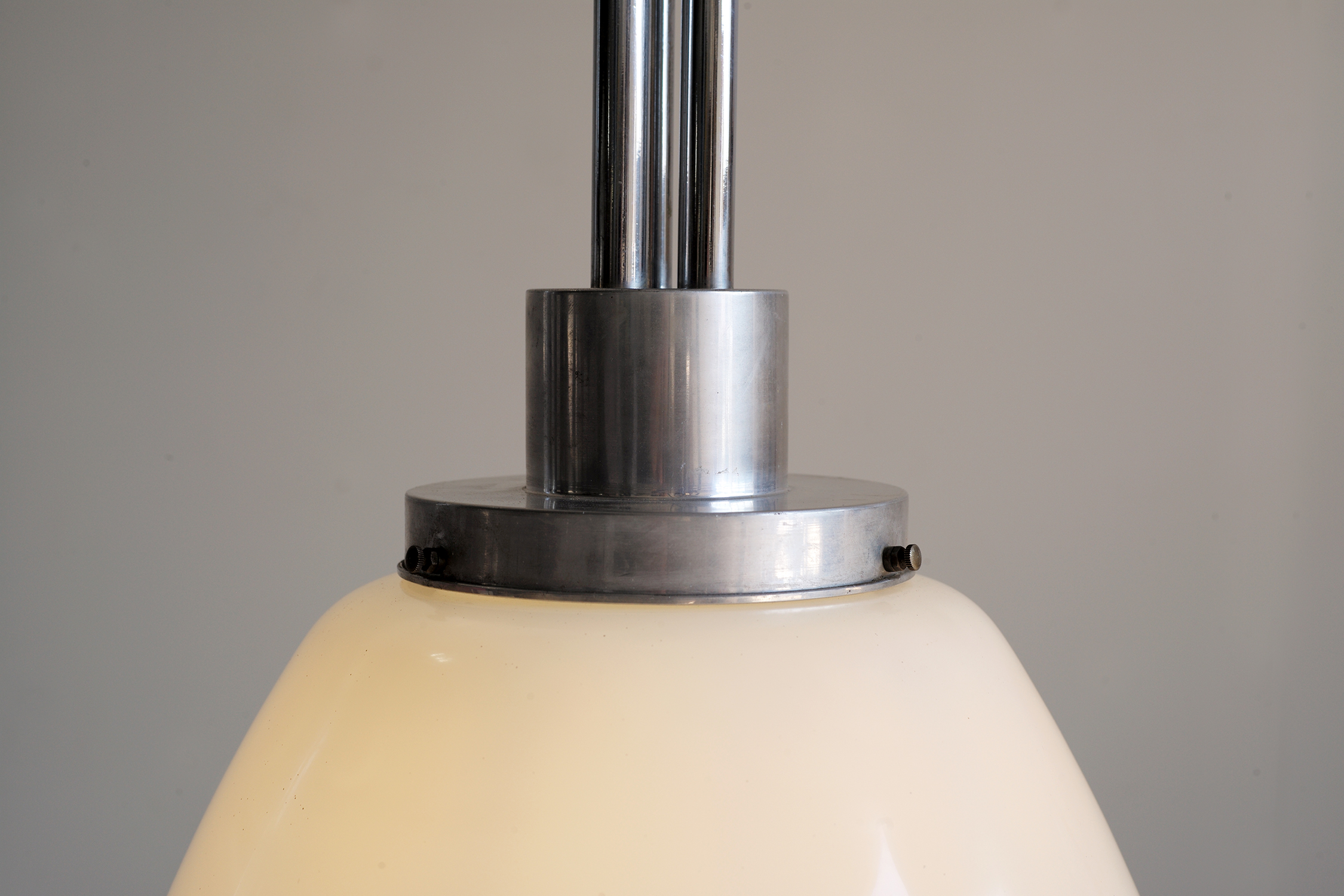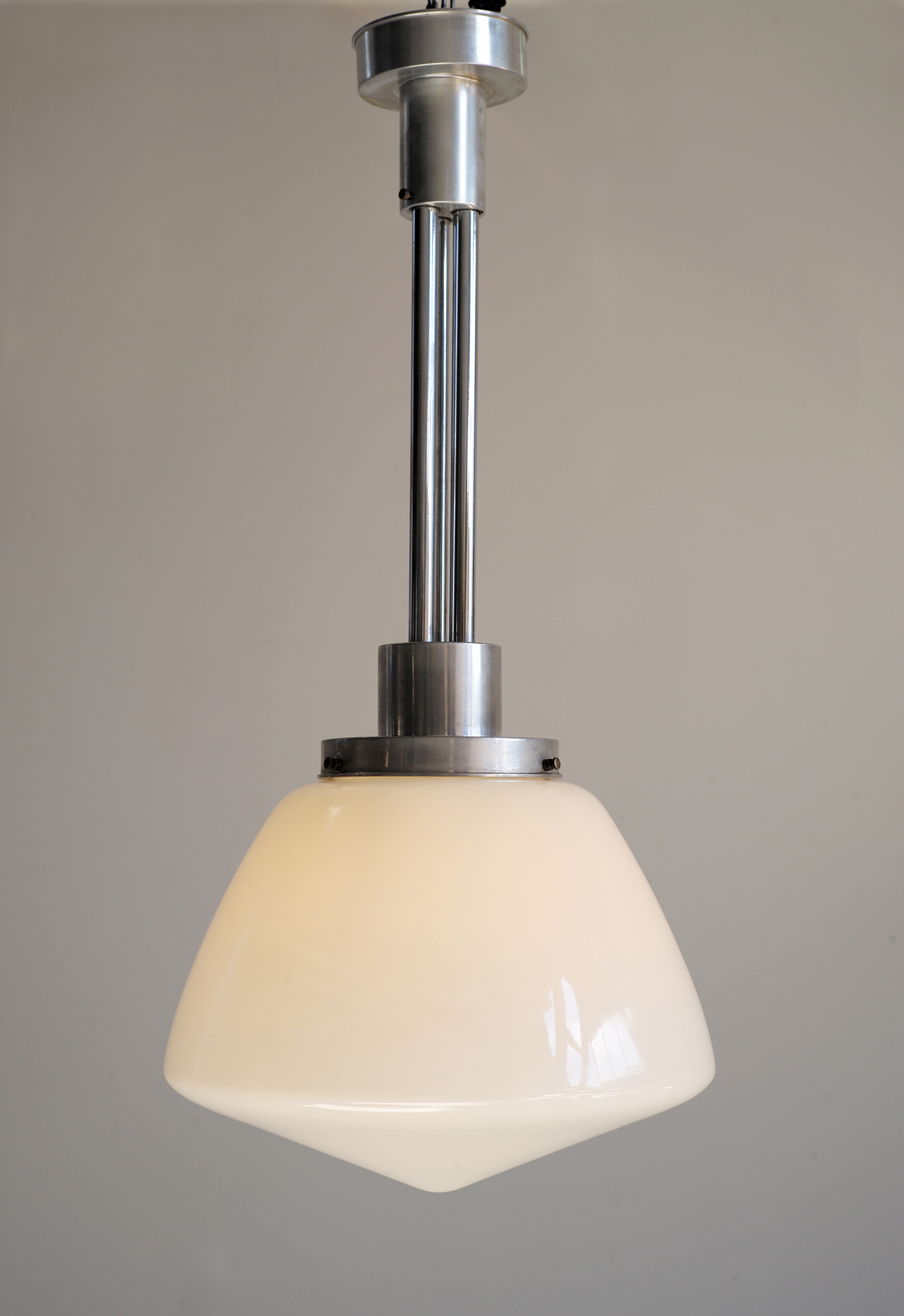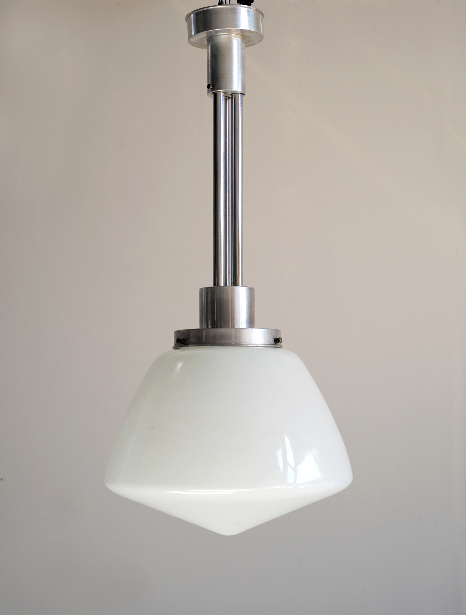 Suspension en alu poli et opaline blanche des années trente.