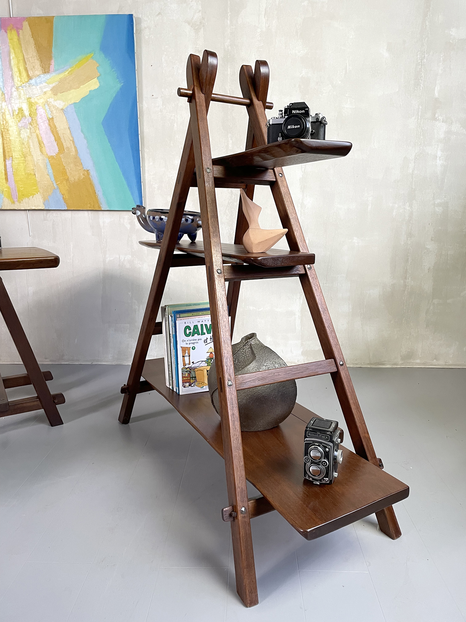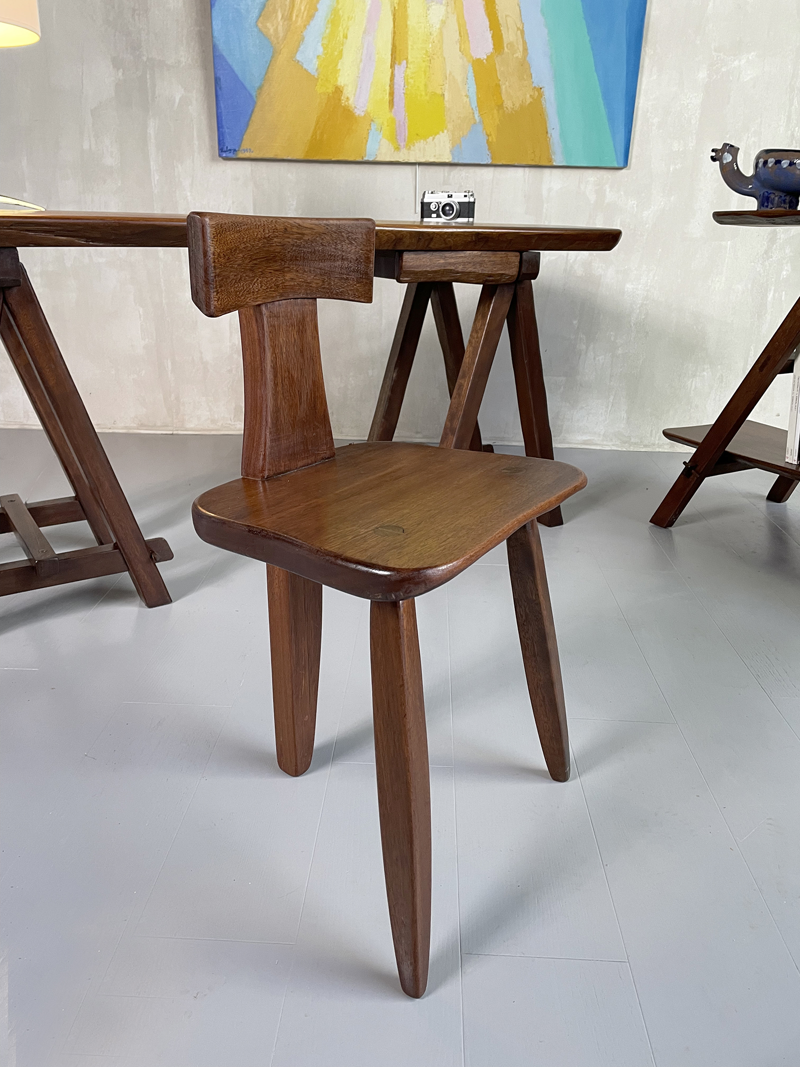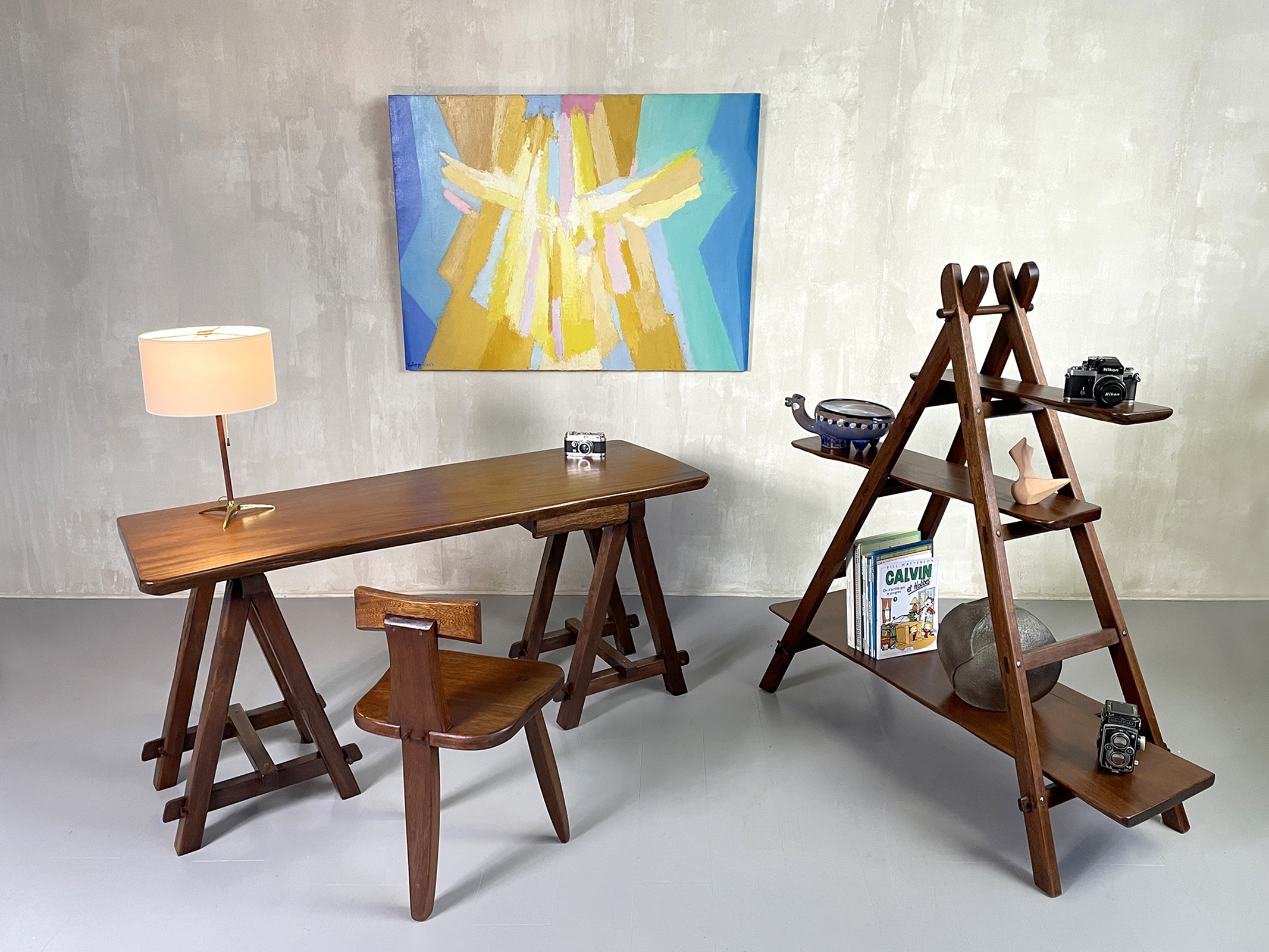 Bureau, bibliothèque et chaise tripode en acajou massif, Circa 1960.