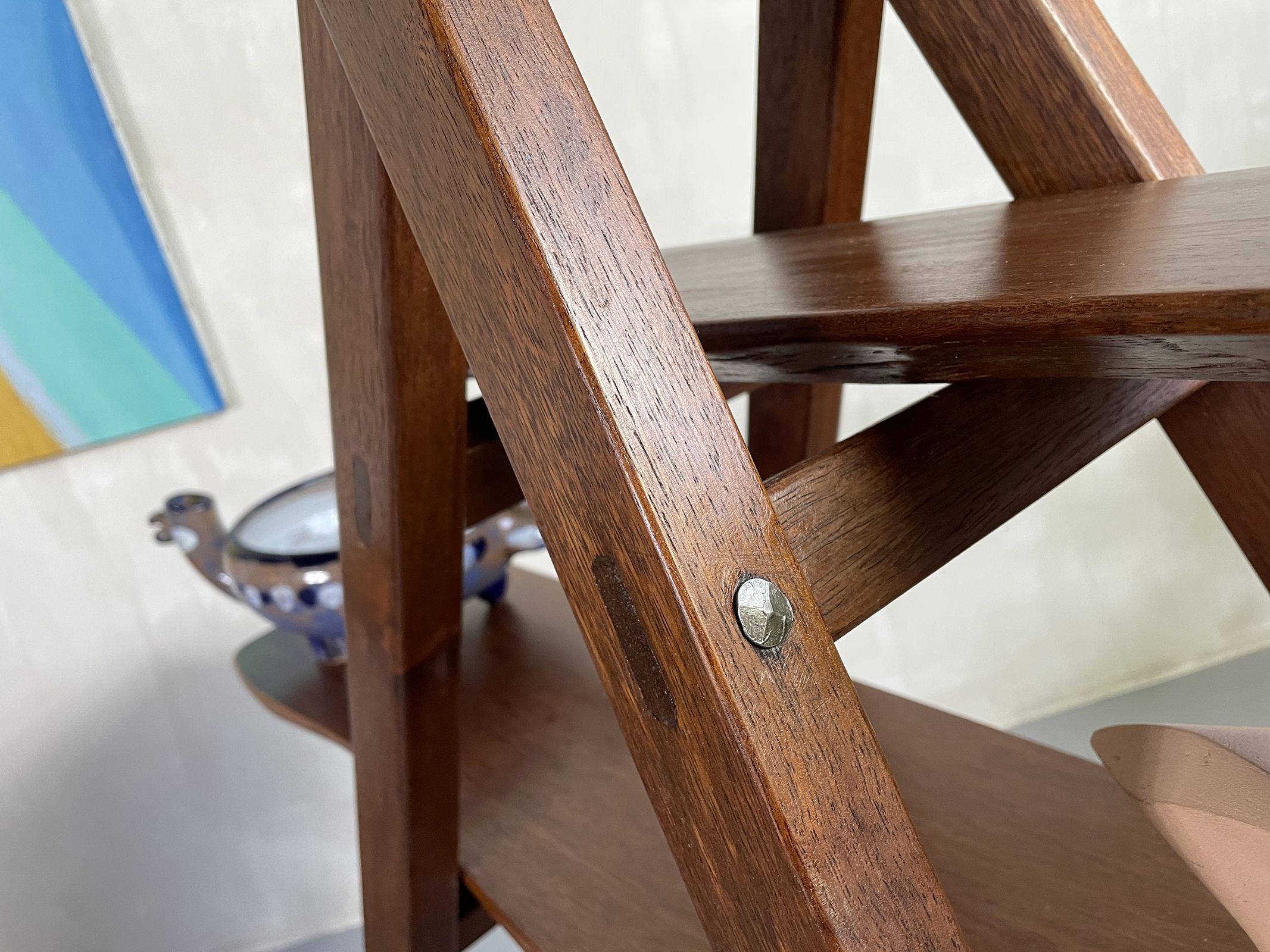 Le créateur de cet ensemble a respecté la forme originelle de l'arbre. Les plateaux en acajou sont utilisés dans toutes leurs largeurs, les bords sont polis et la finition est soignée dans les moindres détails.