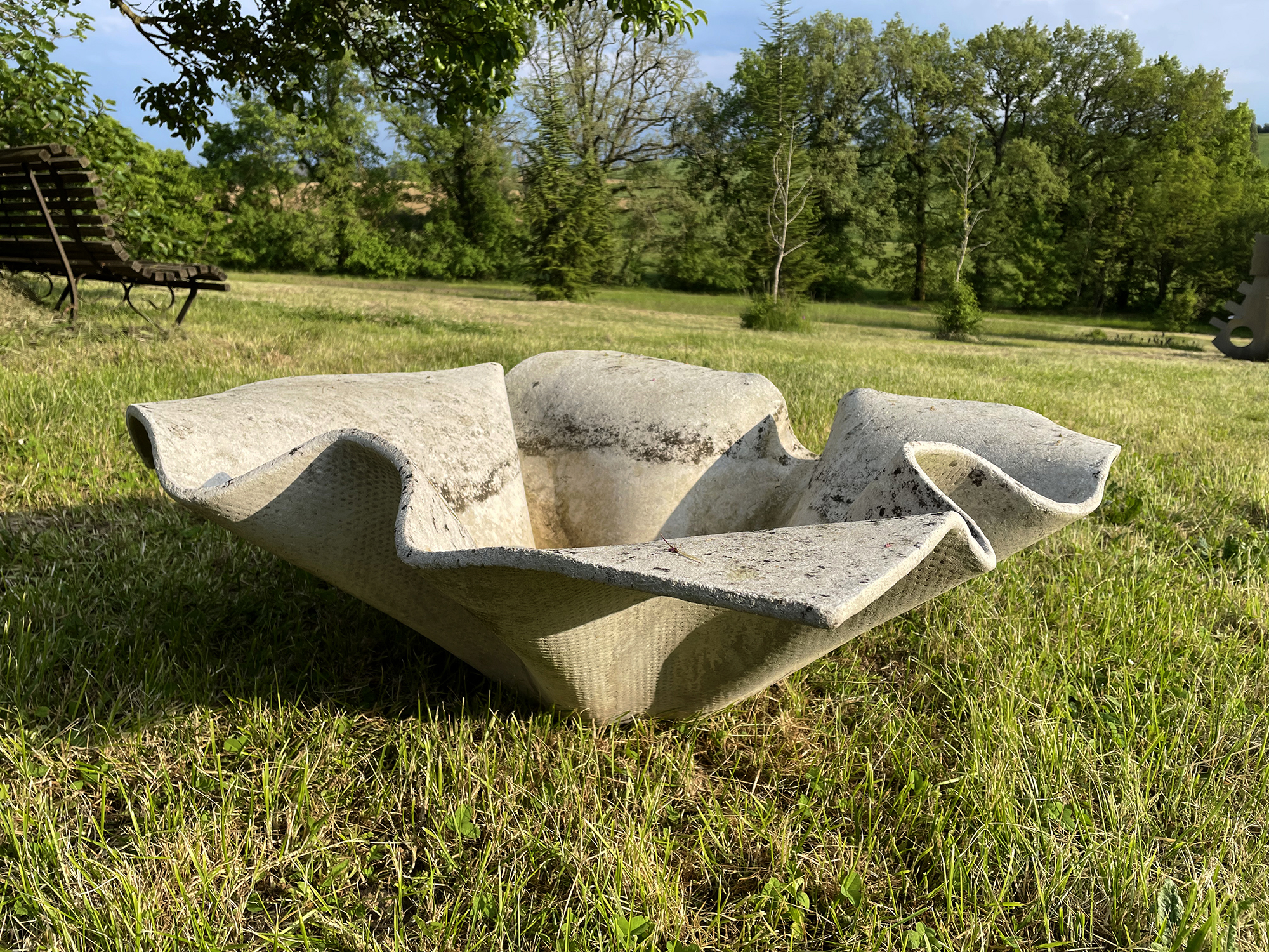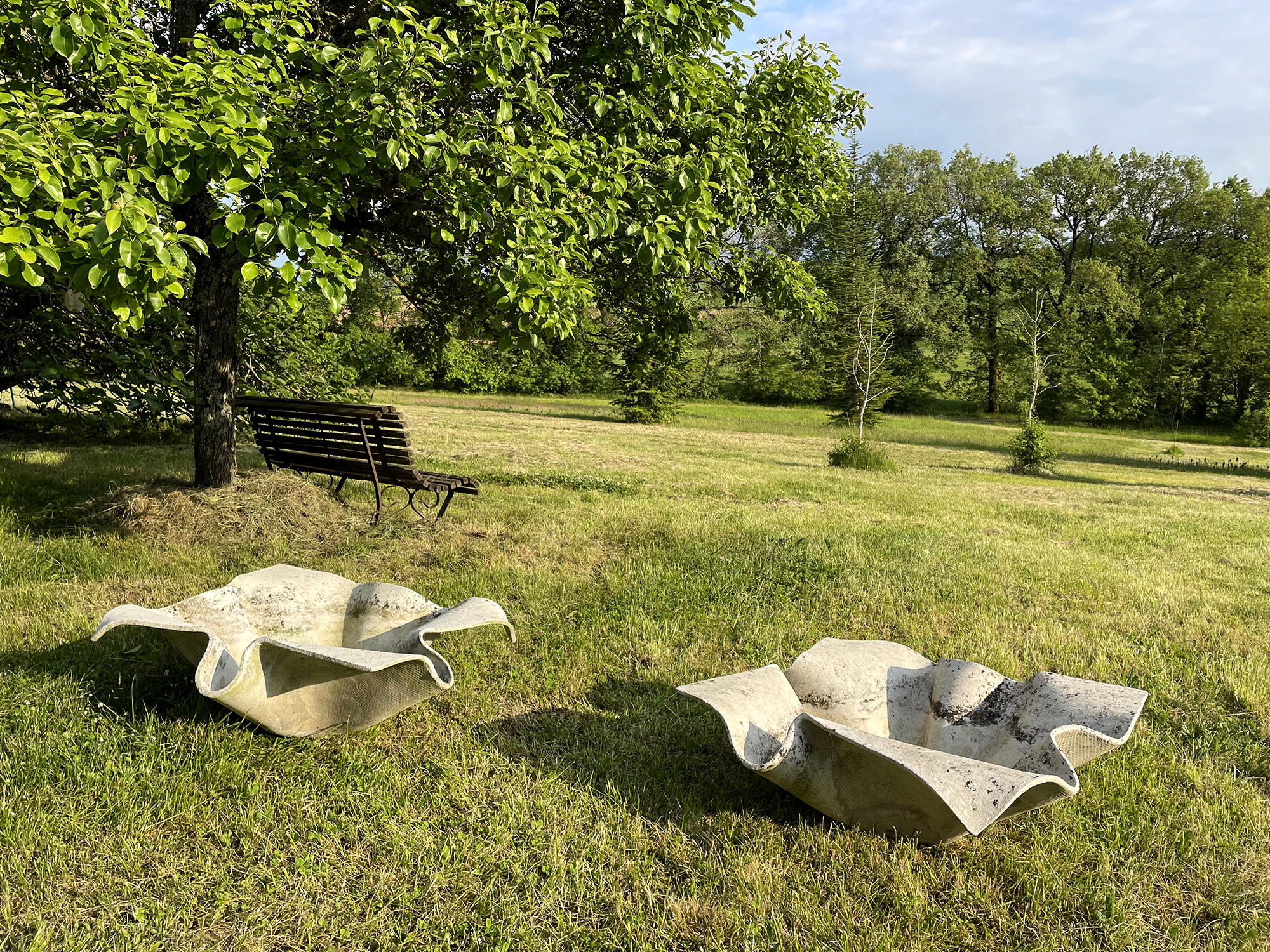 Paire de grandes jardinières "Elephant Ear" créées par Willy Guhl pour la firme Eternit (Suisse 1954). Au début des années 1950, Eternit demande à Willy Guhl de concevoir du mobilier d'extérieur en fibrociment. Cette matière imputrescible se prête au moulage et Guhl pourra exprimer toute sa créativité. Ces jardinières sont des éditions des années 50 et sont en parfait état.