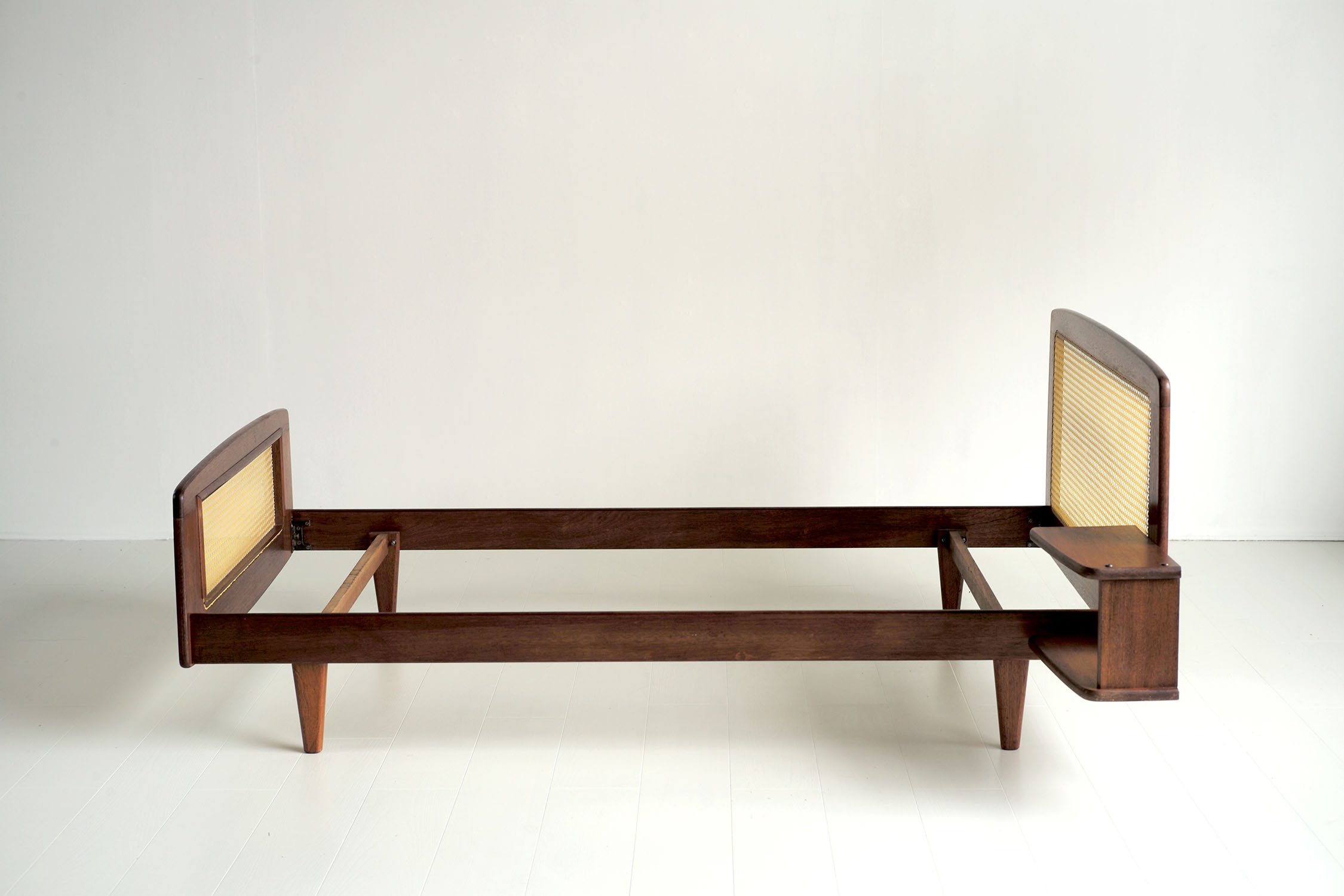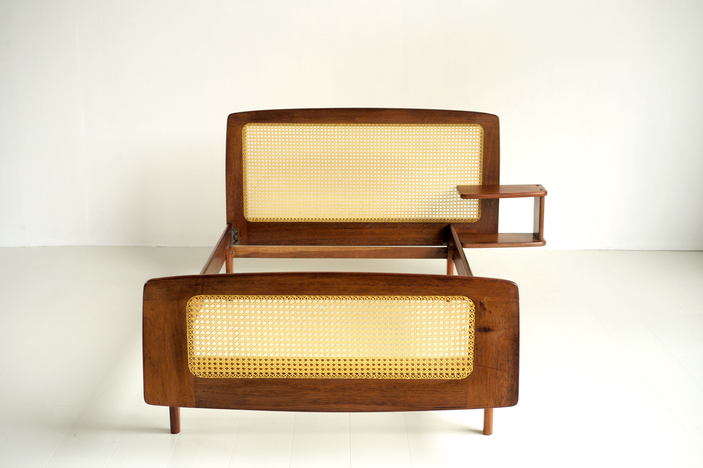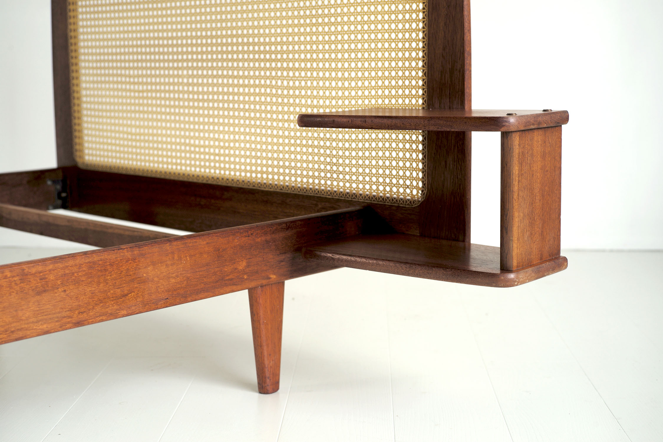 Lit "DN" en acajou et cannage