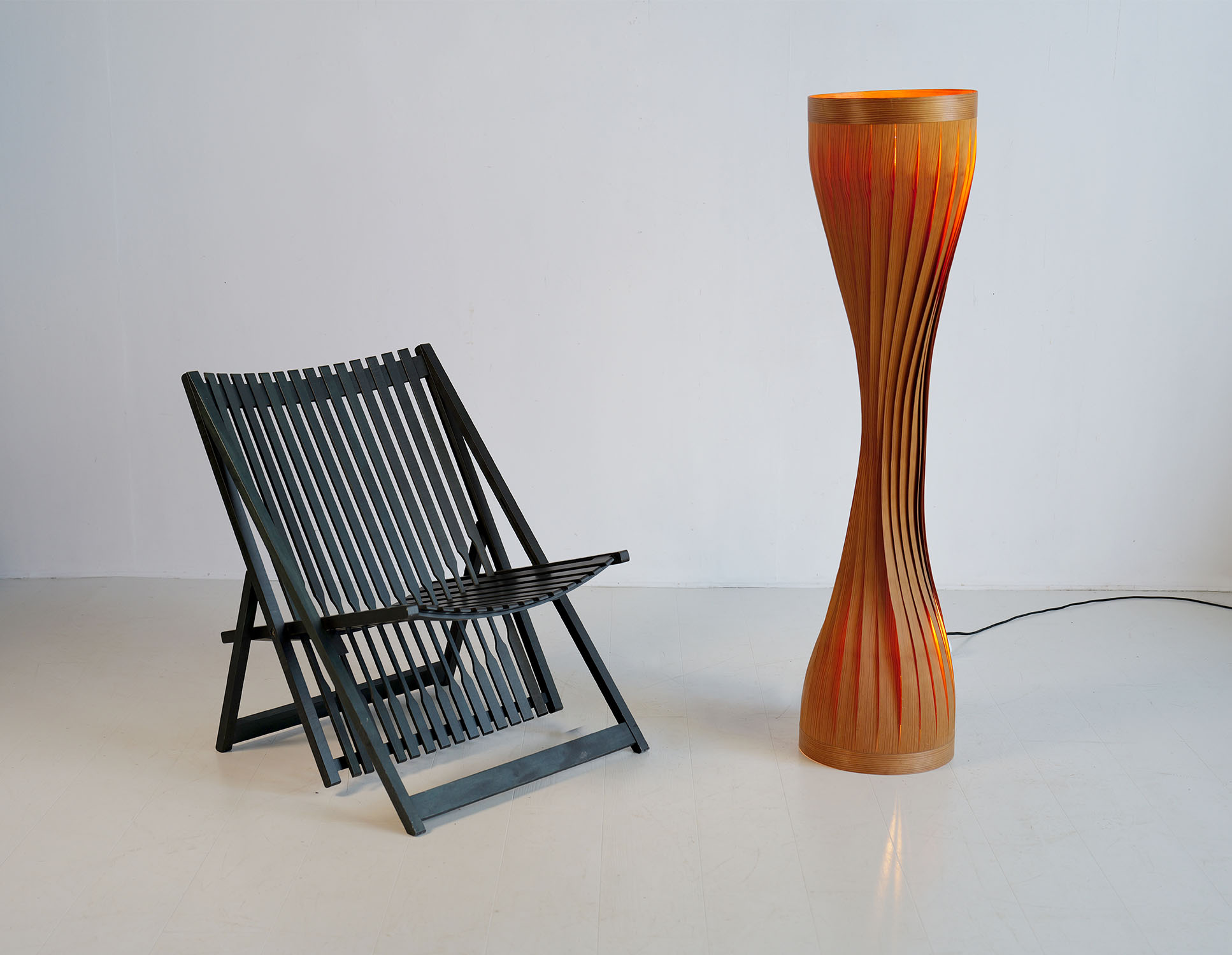 Lampadaire en lames de pin